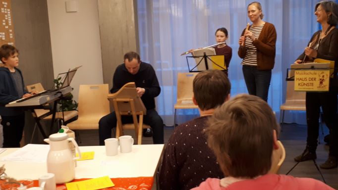 Auch für das leibliche Wohl war bestens gesorgt: Kaffee, Kuchen, Butterbrezeln und Getränke luden zum Verweilen ein. Der Erlös aus dem Verkauf kam dem Sozialfonds der Musikschule Haus der Künste zugute, der Kindern aus finanziell benachteiligten Familien den Musikunterricht ermöglicht.