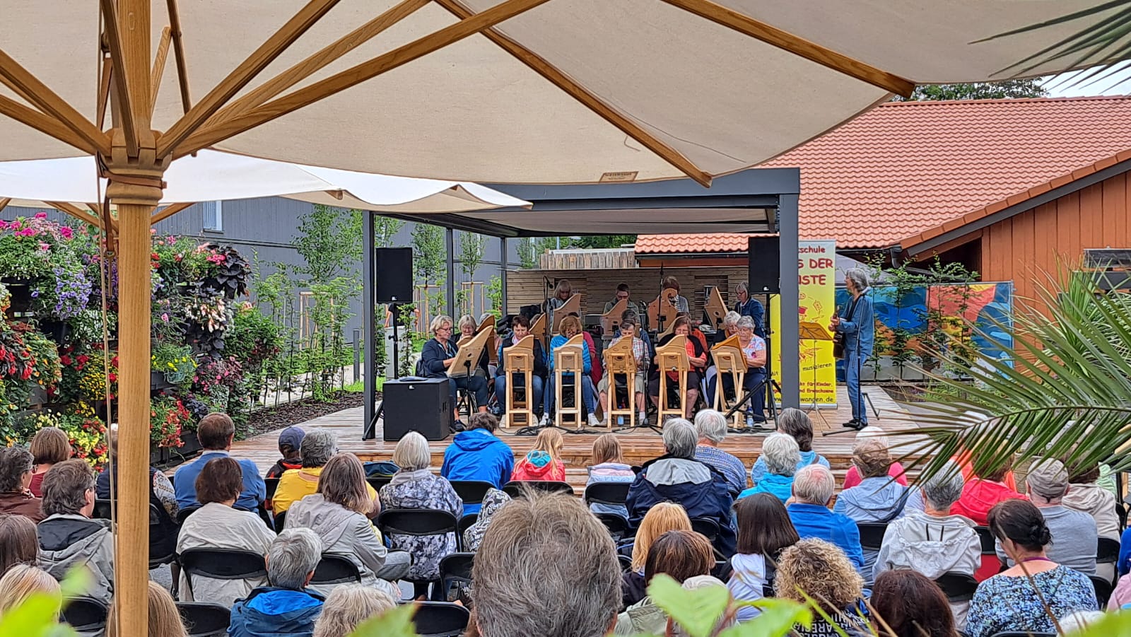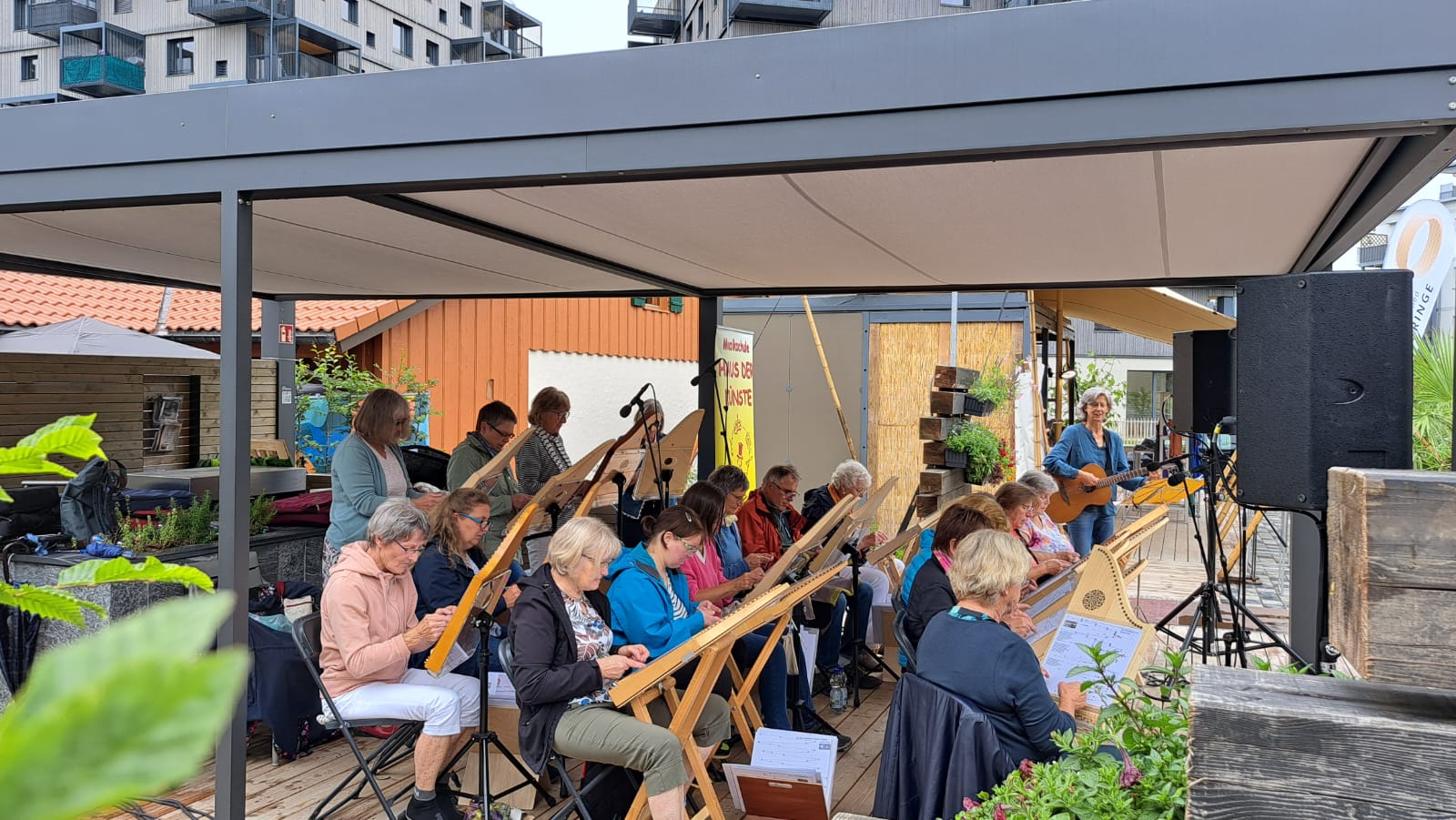 Fast 30 Musikerinnen und Musiker aus sieben Veeh-Harfen-Ensembles des HAUS DER KÜNSTE gaben am Tag der Inklusion ein kleines Konzert auf der Landesgartenschau