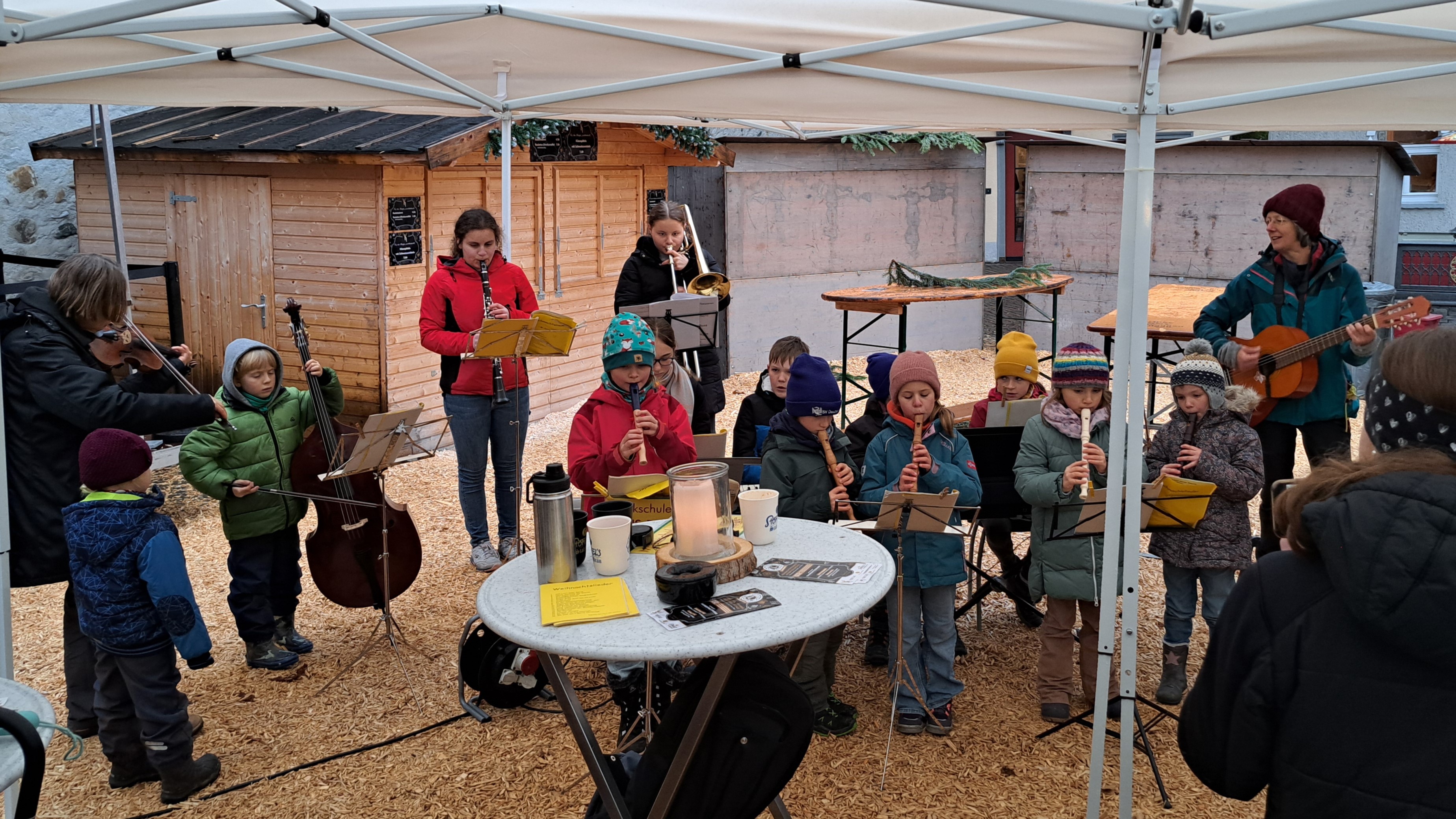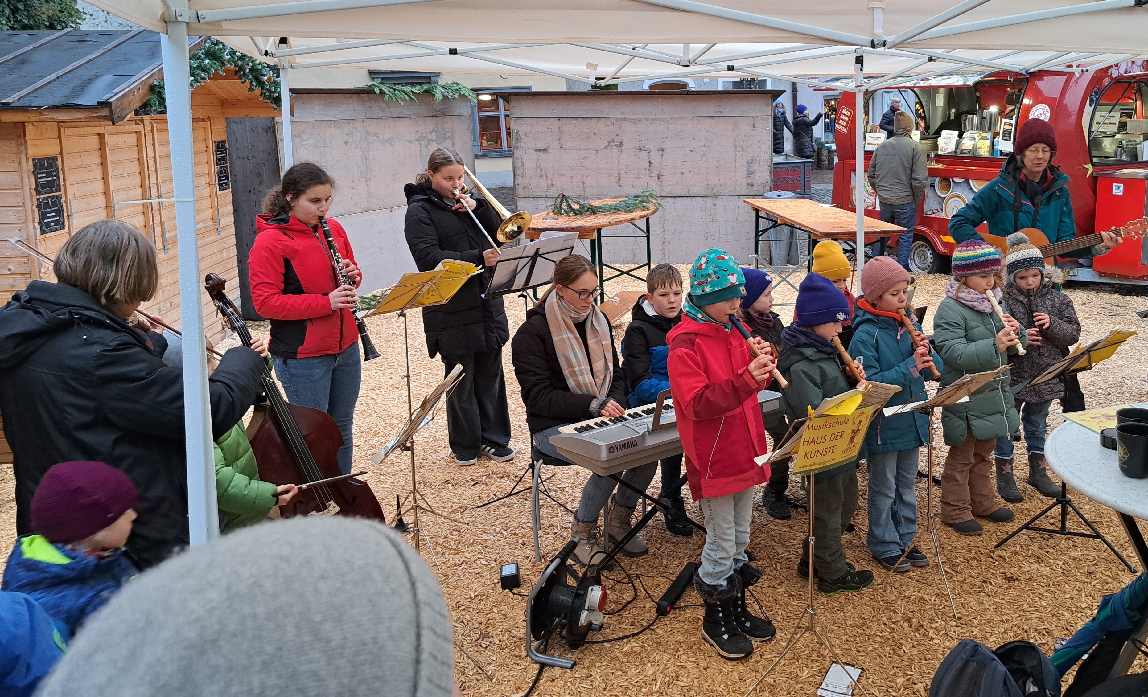 Sanfte Saitenklänge auf der Marktbühne - Kleines Konzert mit Gelegenheit zum Ausprobieren